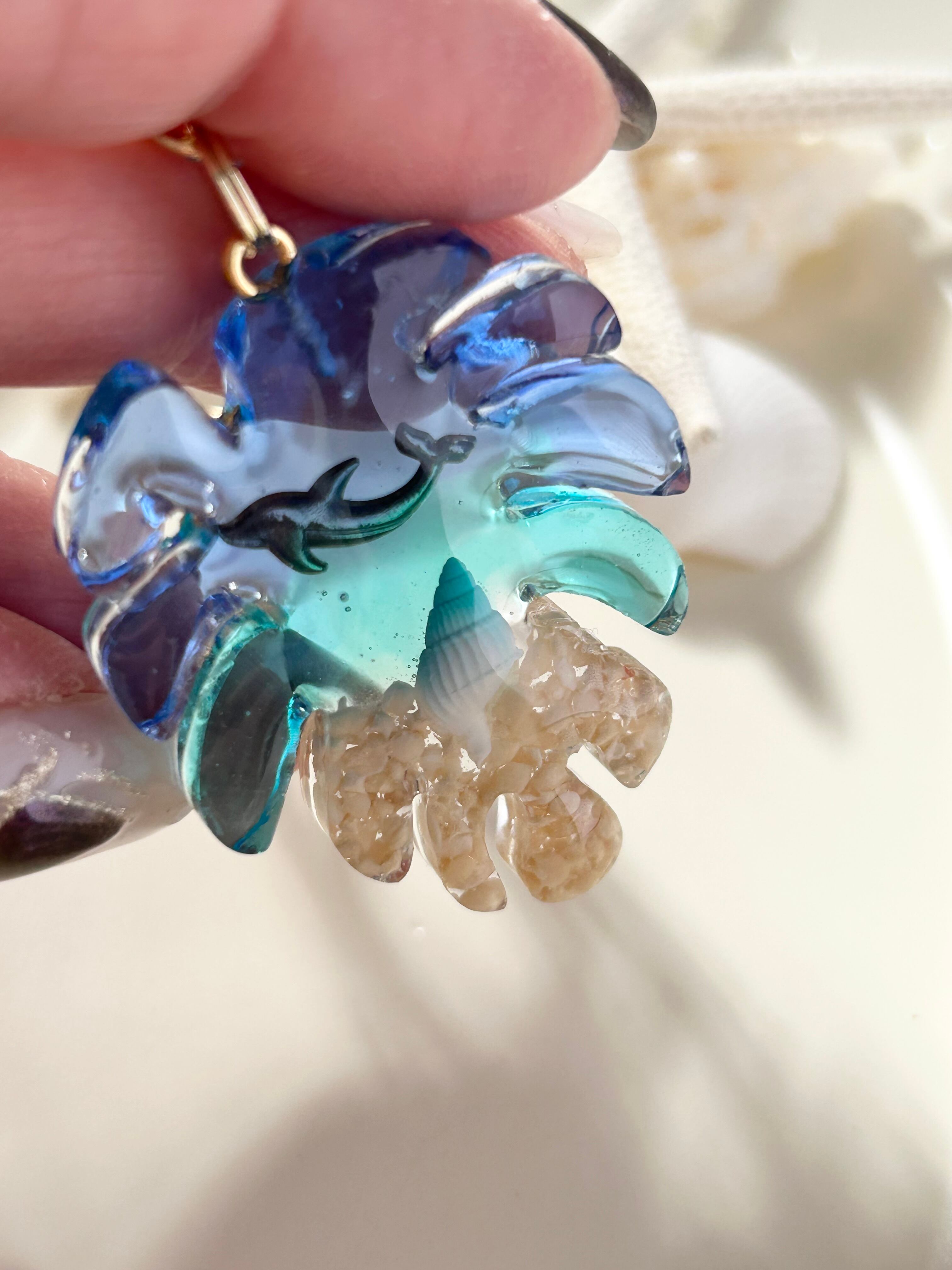 このチャームは、そんなモンステラの形に透き通る海を閉じ込めた、まるで“海から届いた幸せの便り”のようなアイテムです。