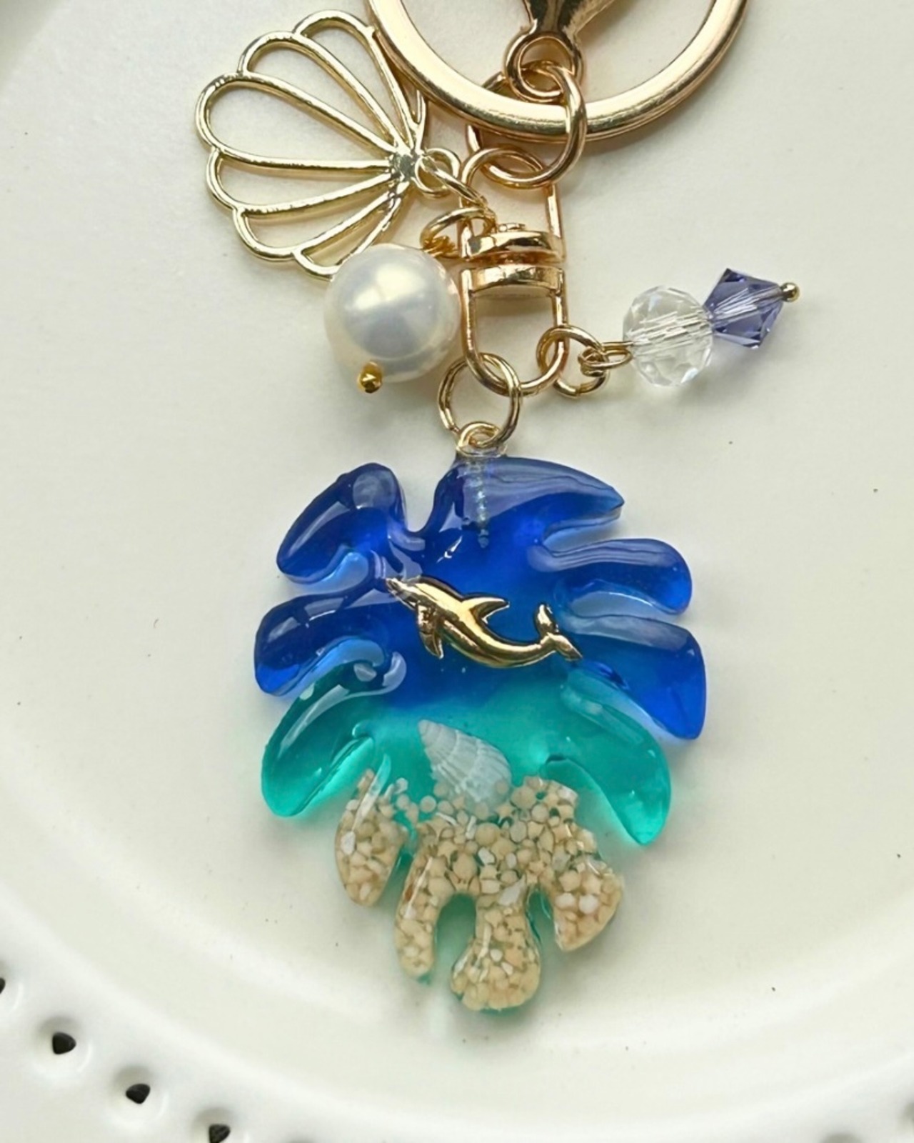 イルカ・星の砂・貝がら入り/キーリング付きレジンチャーム
