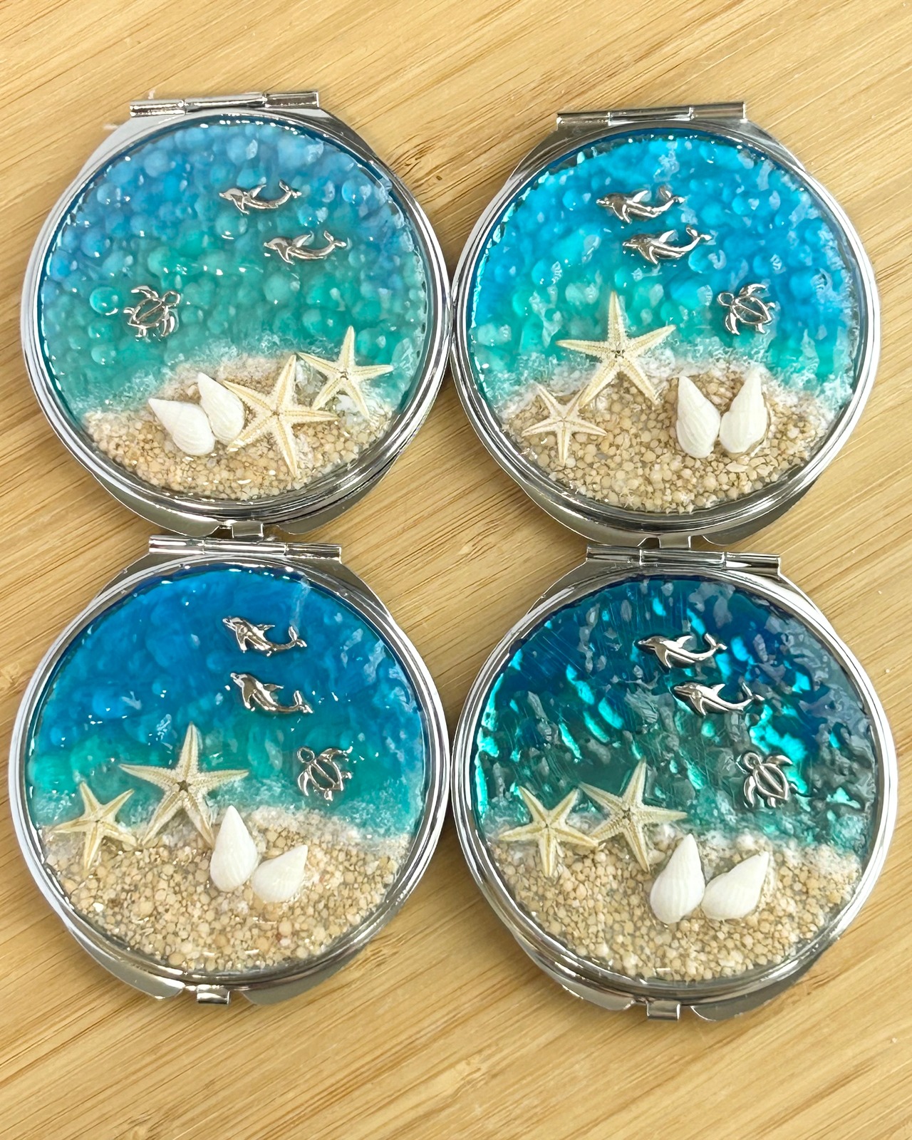 海のコンパクトミラー シルバー プレゼントに